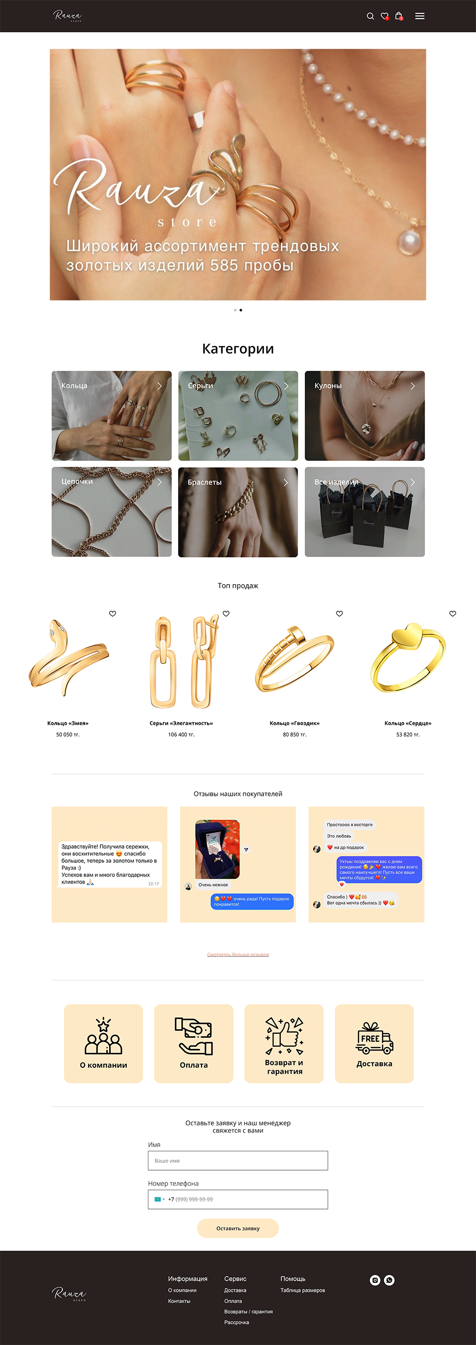 Ювелирный магазин Rauza существует на рынке более 5 лет. За это время работы мы собрали широкий ассортимент золотых изделий, которые радуют более 1000 наших постоянных клиентов.